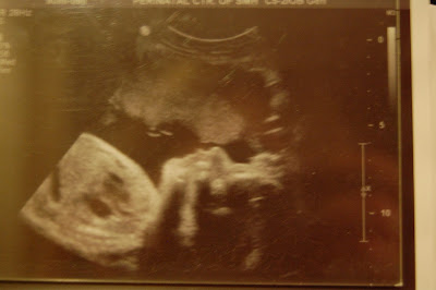 We got more good news this week about Little Girl Bower to be. Mark and I went to see the perinatologist this past Wednesday and got a great report! Everything is going well so far. A perk of my appointment was that we got to see our sweet girl again. The tech, who is so sweet, tried to get a shot of her face while performing the ultrasound. Just as we thought she was not going to cooperate she turned her head and looked right into the camera to give us a beautiful view of her face. We could see her eyes, like she was looking right at us, and she was blinking. The only way to describe it is amazing. I am already in love.